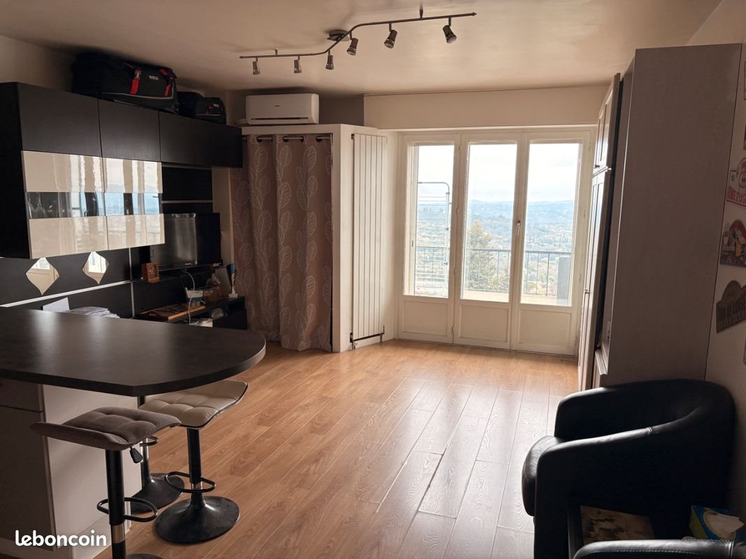 Studio vue mer situé a magagnosc de 30m2 avec cuisine ouverte sur sejour/lit , salle de douches avec Wc Petit balcon Climatisation Une place de parking privative et une cave Le bien est au 3e étage mais accès par la place de parking de plein pied Locataire en place loué 620 euros par mois Plus d'informations par message