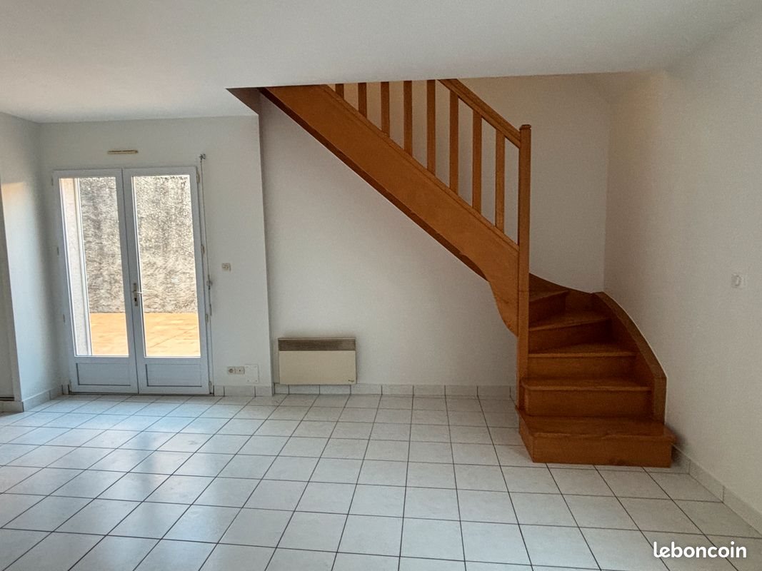 Appartement situé dans une rue calme du centre ville de Chalonnes sur Loire Superficie : 75 m2 Rdc : séjour+cuisine + Wc 1 cour privative clôturée 1er étage : 2 chambres + Sdb + rangement Disponible : 1 er juin 2026