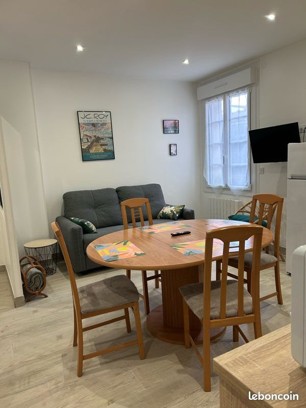 Appartement idéalement situé en plein centre ville - accès tout à pied : plage marché gare,tous commerces, rez-de-chaussée d’une résidence sécurisée A louer sous forme d'un bail meublé d'un an reconductible. Pièce de vie/cuisine bien équipée,lave vaisselle, four, plaque induction micro ondes et petit électroménager canapé convertible grand confort, Chambre avec lit 140x190 également grand confort salle de douche avec Wc Chauffe eau nouvelle génération et lave linge Chauffage électrique basse consommation Charges ´non comprises Les visites s'organisent avec un dossier de candidature complet.