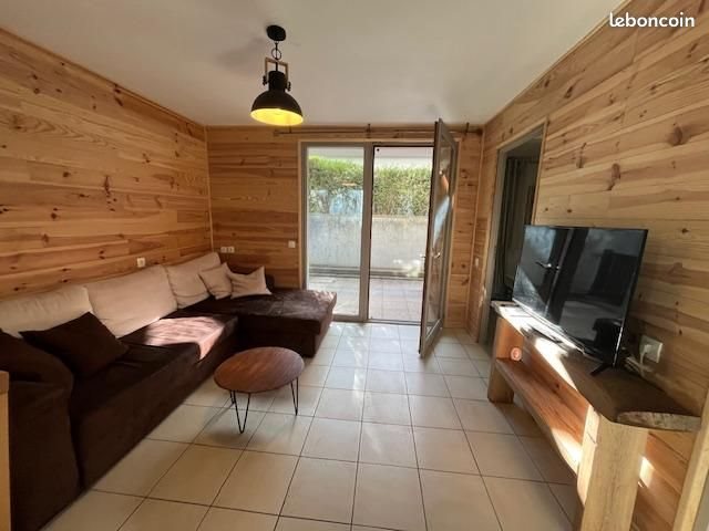 Location T2 à l'année à Arreau dans résidence sécurisée, comprenant: - 1 pièce de vie avec téléviseur, canapé, table de salon - 1 cuisine équipée (four traditionnel, micro-ondes, réfrigérateur/congélateur, cafetière, vaisselle), placards de rangement, et petit meuble - 1 entrée avec placard de rangement - 1 table et 4 chaises - 1 chambre avec literie en 140 cm et placards de rangement - 1 salle de bain avec douche, lavabo, rangements et Wc intégré - 1 terrasse - 1 piscine d'été - 1 espace laverie