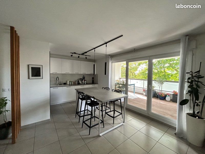 Particulier vend un appartement familial de type 4 d’une surface de 87 m² au 1er étage d’une résidence récente de 2017. Depuis l’entrée avec placard, vous accédez à une pièce de vie de 33 m² avec une cuisine équipée ouverte et son accès à une terrasse de 16 m² exposée Sud. L’Appartement dispose de : - 3 chambres avec placard (13.5 m², 12 m² et 11.5 m²) - 1 salle d’eau avec espace buanderie - 1 salle de bain avec baignoire et double vasque - 1 Wc indépendant L’appartement est également équipé de la climatisation, fenêtres Pvc double vitrage, volets roulants, chauffage individuel au gaz Un garage fermé est inclus dans le prix. Possibilité d’acquérir un second garage en supplément. Le rooftop de la copropriété est accessible avec une vue dégagée sur la ville de Lyon. Idéalement situé Chemin de Fontanières à la Mulatière à proximité des commerces, des transports, des axes autoroutiers et des écoles. Montant des dépenses annuelles d'énergie (électricité et gaz avec abonnements) : 1315 euros Montant annuel des charges de copropriété : 2822 euros À propos de la copropriété : - Pas de procédure en cours - Nombre de lots : 255 dont 105 d’habitation D'autres photos sur demande. Vente entre particuliers uniquement, merci aux agences de s’abstenir.
