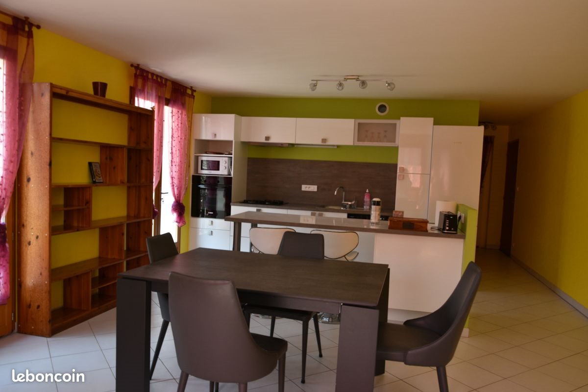 Location meublé courte ou longue durée. Idéal pour nouveaux travailleurs frontaliers (Suisse) ou pour ouvriers en déplacement. Appartement entièrement équipé de 58 m² situé au 1er étage, comprenant une chambre avec lit double 160x200, une cuisine ouverte sur vaste séjour (télé 80cm, wifi gratuit) avec clic clac 2 places et canapé lit 2 places, une salle de bain avec baignoire et machine à laver, Wc indépendant, balcon, parking privatif voitures et poids lourds (max 3 semi-remorques). Non-Fumeur à l’intérieur exigé. Logement situé dans petit village de campagne à 30mn d’Annecy et de Genève, 10 mn de la frontière Suisse. Gare Sncf et bus pour Genève sur la commune de Valleiry (7km). Tarif 350€ la semaine ou prix au mois à discuter. Renseignements par téléphone de préférence.