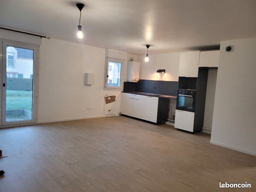 Calme dans résidence privée. En rdc avec terrasse privative Emplacement privilégié a proximité des écoles. Sur les hauteurs de pontivy Cuisine/séjour avec cuisine aménagée ( evier plaque induction four, nombreux placards) de 35m2 environ Sdb: vasque avec meuble, Wc, douche, sèche serviette. Chambres calme et lumineuse. Une de 11m2 environ avec dressing et une chambre de 10m2 Chauffage individuel garage privatif dans un parking souterrain sécurisé Travaux en cour de finalisation location possible a partir du 15 mars. (Les travaux ne sont pas intégralement finalisé sur les photos) L électricité a été refaite a neuf. Sdb et séjour refait intégralement Revenu minimum 3 fois le loyer. Possibilité d avoir des garants Loyer 710€ . 1 mois de caution. Provision pour charge 40€ Pas d agence. Vous économisez donc les frais d agence. Étiquettes énergétique C