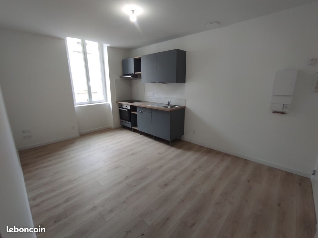 Appartement refait à neuf, idéal pour une ou 2 personnes, en plein centre ville. Isolation dernier cri. Composition : pièce de vie avec cuisine équipée, chambre, salle d'eau, wc, coin bureau. Débarras privé sur le palier. Attention n'oubliez pas de compléter votre profil si vous souhaitez être recontacté.