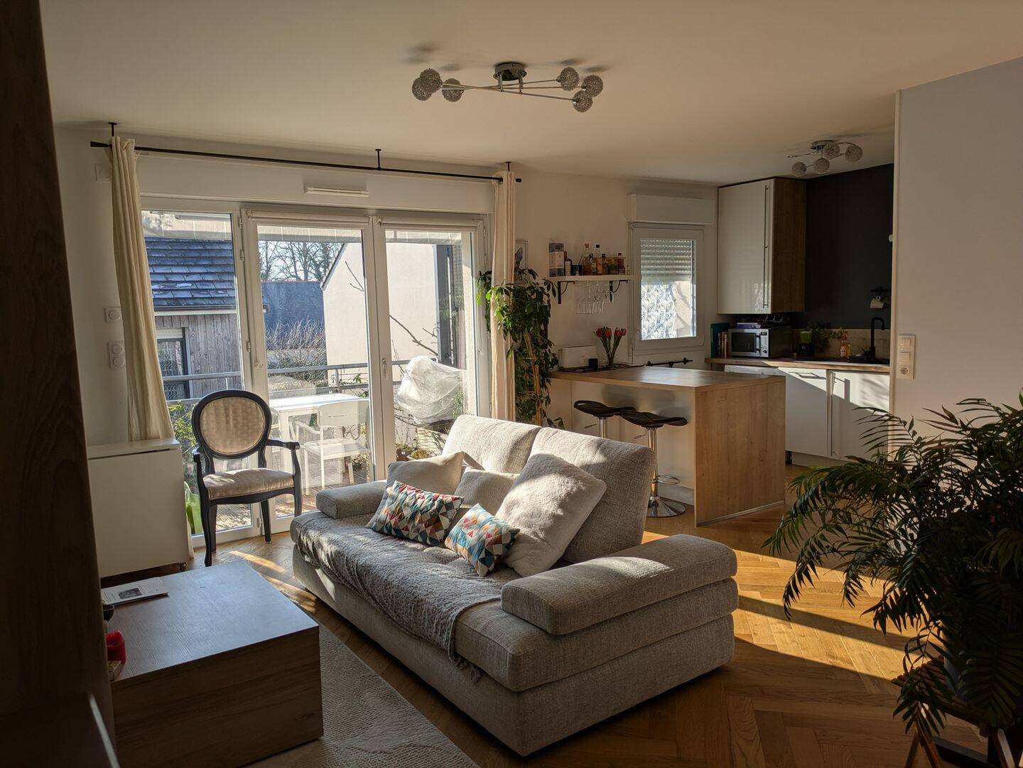 À louer : appartement T3 meublé, 60 m², situé au premier étage sans ascenseur avec terrasse de 7 m², dans une petite résidence récente, proche des commerces et transports. Pièce de vie orientée sud-sud ouest de 30 m2, sur parquet massif avec canapé, table ba...