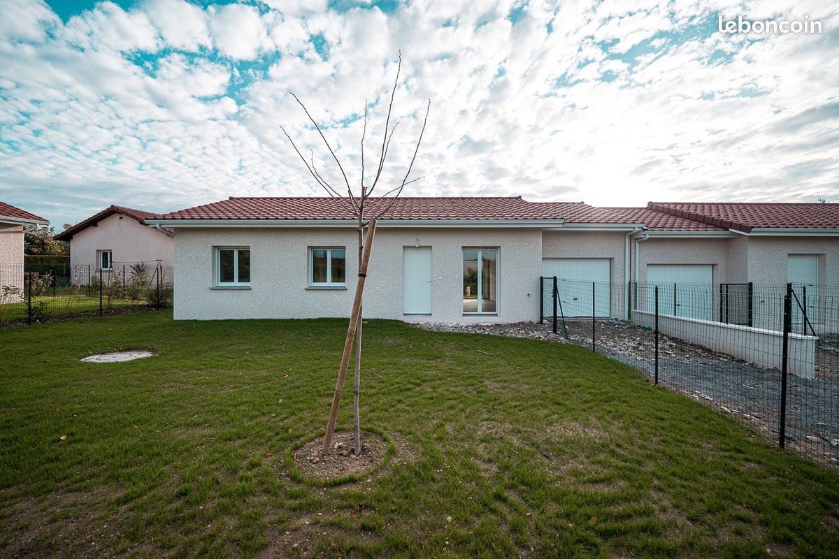 Maison construite en 2023 plain-pied de type 4 d'une superficie de 82 m². Maison jumelée comprenant une cuisine meublée non équipée ouverte sur séjour, dégagement, trois chambres, grande salle de bains (douche à l’italienne) avec double vasque et sèche serviette à inertie fluide, Wc suspendu séparé et cellier isolé. Volets électriques. Normes Pmr. Chauffe-Eau thermodynamique, chauffage de la pièce de vie en climatisation réversible, radiateur à fluide caloporteur dans les chambres. Un garage attenant de 15 m², parking et un jardin privatif arboré et clos. Proche Bourgoin-Jallieu, 10 min sortie autoroute L’Isle d’Abeau Disponible : Loyer CC/mois : 1100 € Dépôt de garantie : 1100 €