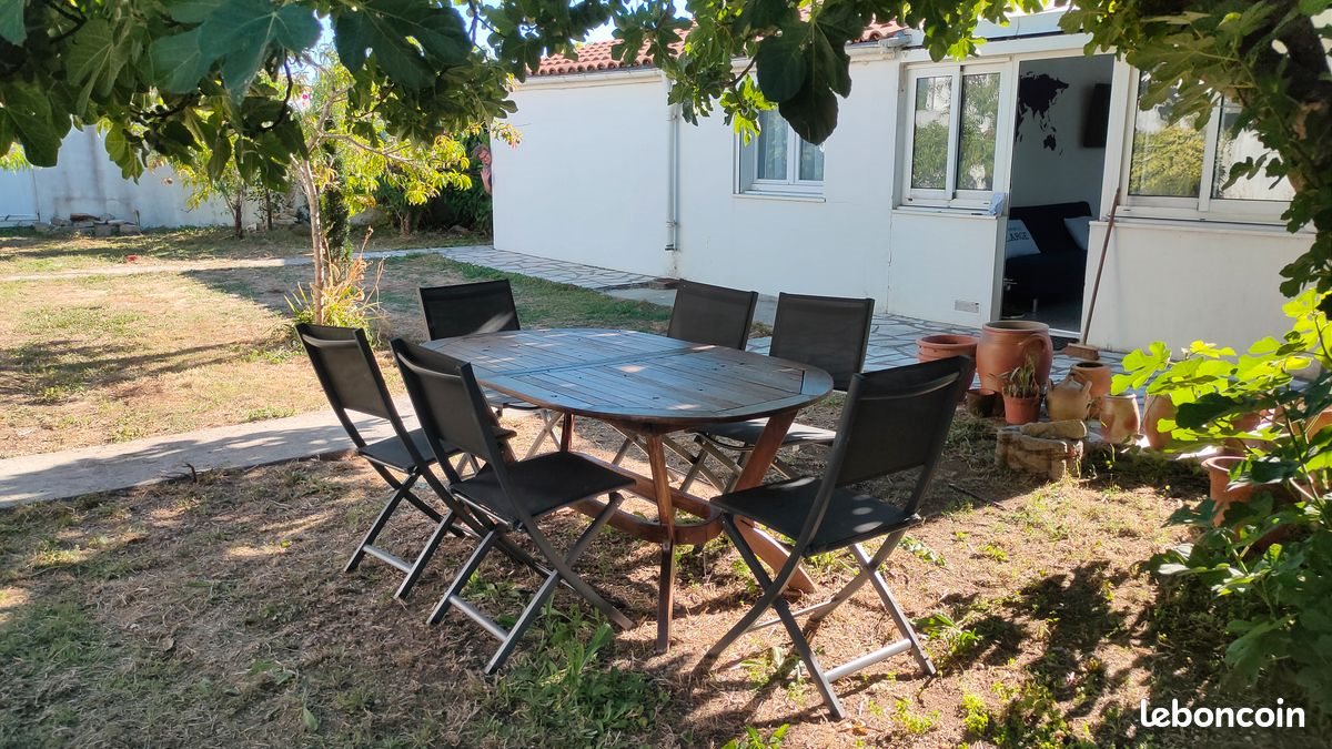 -- Location de maintenant à fin juin seulement. De particulier a particulier, donc sans frais d'agence. Maison meublée de 54m² + jardin à Aytré - La Rochelle. Vous disposerez de : - 2 chambres avec dans chacune : 1 bureau + siège, 1 lit de 140, rangements + salle de douche privative dans chaque chambre. - cuisine équipée, réfrigérateur, congélateur, plaques de cuisson, hotte, four, four micro-ondes, vaisselle, lave-linge séchant, lave-vaisselle - véranda - jardin arboré et salon de jardin Avantages : - Pas d'ouverture de comptes Edf ni Eau in Internet - Eligible Caf - Wifi inclus - Proche tous commerces à pieds. Logement refait à neuf en juillet 2022. Situé à 30 mètres de l'arrêt de bus ligne n°1 (Les embruns) Temps de trajet universités/écoles : 14 à 18 minutes en bus, 17 minutes en vélo. Loyer par mois 799€ sans les charges (provision 70€/mois : eau, électricité, internet, ordures ménagères. Vous n'avez pas d'ouverture de compte Edf, eau ou internet à réaliser). Visites sur place ou en visio.