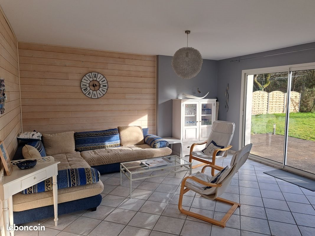 Maison lumineuse, très agréable avec grand jardin plein sud à 3,5 de la mer. Location possible à partir de fin septembre début octobre 2026 jusqu' à fin avril début mai 2026 Bail mobilité ( missions entreprises, famille en attente de construction de résidence principale etc...) Rdc : grande pièce de vie avec cuisine ouverte (accès sur grande terrasse avec partie ombragée), wc séparé, 1 chambre (lit 160) avec sa Sdb (douche, baignoire), buanderie avec machine à laver et sèche linge. Etage : 1 chambre (lit 140 + 2 lits 90), mezzanine (1 lit 140 + 1 lit 90), Sdb avec petite baignoire, wc séparé. Jardin de 1450 m2. Loyer : 1650/mois charges comprises (eau, internet fibre) hors contrat d'électricité. Vous devez prendre un contrat d'électricité à votre nom avec le fournisseur de votre choix D'autres photos sont disponibles sur demande