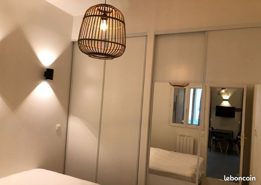 F2 meublé en très bon état Cuisine toute équipée (four, plaque,frigo-congelo,cafetière, bouilloire, grille pain et tout le matériel de vaisselle...) ouverte sur pièce de vie avec canapé et Tv. Chambre avec lit 2 personnes et dressing Salle de bain avec lave linge et sèche linge Nombreux rangements Proche toute commodités ( poste, pharmacie, boulangerie, supérette, restauration rapide...) Transport en commun. Stationnement gratuit