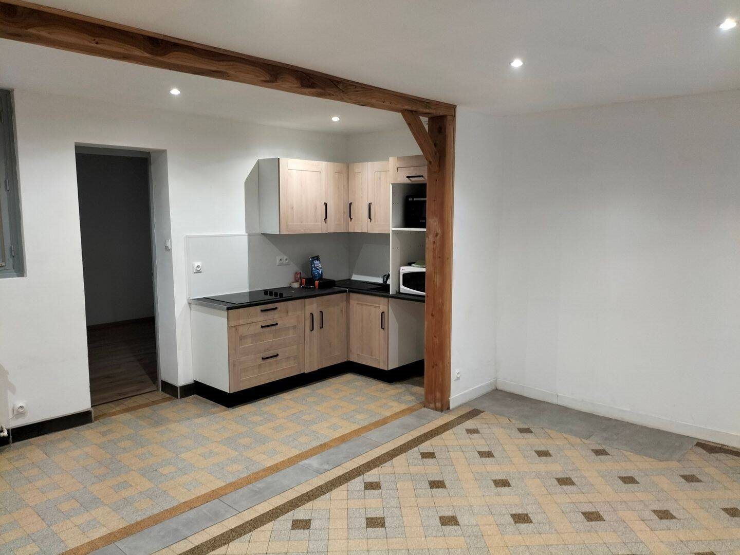 A Airaines, proche centre, location maison de ville composée d'une cuisine aménagée et semi équipée (plaque) avec emplacement four et lave vaisselle ouverte sur séjour, une pièce type bureau, accès cave et cour avec terrasse et dépendance. À l'étage, un palier a...