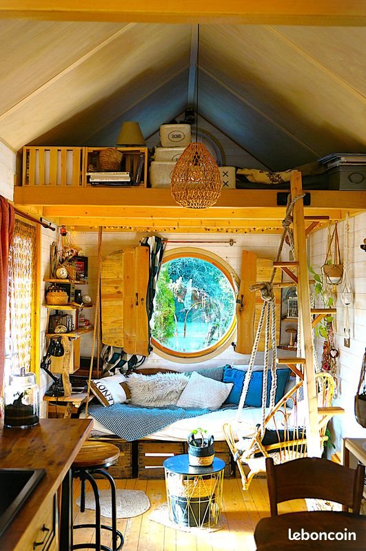 Une petite maison mobile, tout confort, tout bois, fenêtres double vitrage haute qualité. Merci de lire les informations dans l’annonce ! Maison ossature bois de 2021, avec 2 mezzanines, écologique. Maxi 4 à 5 couchages. 1 sdb, une cuisine équipée, un espace salon avec portes vitrées, un espace salle à manger. Conçue par le constructeur « La maison qui chemine ». La maison se trouve actuellement au camping. Intérieur en bois : étagères, parquet… Électricité, prises électriques, 3 ventilations. - Longueur 6,50 m, largeur 2,50m. Soit 14 m² au sol + Mezzanines : 23 m² en tout. Hauteur 4m10 Poids maxi : 3,5 tonnes. - Extérieur : avec 2 panneaux solaires connectées à 2 batteries Victron. Isolation performante pour un hiver au chaud. Appentis techniques. Y compris placard pour outils. Essieu double, avec freins intégrés. Plus d'INFOS : - Salle d’eau : Toilettes sèches Douche classique Chauffage/chauffe-eau de qualité, 2 en 1. Une ventilation Une fenêtre - Cuisine entièrement équipée avec une fenêtre: Avec un évier double vasque et robinet (pouvant marcher en autonomie, prévoir 2 jerricans par exemple, ou sur le réseau d’eau habituel). Frigidaire 60 litres Four à gaz (branchement électrique possible) 2 brûleurs gaz Plan de travail et étagères, en bois massif Branchement et évacuation pour machine à laver le linge 4 Prises électriques Une ventilation Meuble sous vasque avec 2 portes Une fenêtre - Coin salon et salle à manger, avec porte vitrée et 2 fenêtres : Table bois incluse. Étagères pour livres + Étagères pour vaisselle bols assiettes... Espace pour un canapé-lit Armoire avec étagères et penderie Possibilité de brancher un chauffage sur le gaz. Une ventilation Un escalier d’accès à la mezzanine parentale, avec son socle, un meuble qui sert de rangement Une échelle pour accéder à la petite mezzanine Une fenêtre + un grand œil de bœuf + porte vitrée - 2 mezzanines : 5 m² et 4m2 Pouvant accueillir chacune des lits double. On peut s’asseoir dans le lit. Une des mezzanine à un espace bureau (en s’asseyant par terre) L’autre mezzanine comporte une étagère qui peut également servir de bureau (idem, assis par terre) Éclairage électrique dans chacune d’elle, avec va et vient Prises électriques, œil de bœuf, dans chacune