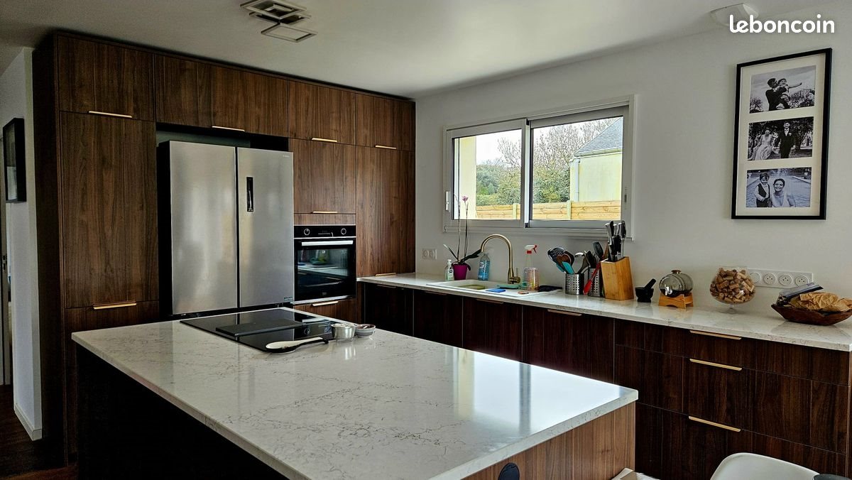 Maison contemporaine 121 m² – Vue dégagée – Piscine chauffée – Kersaint-Plabennec Idéalement située à seulement 200 mètres de l’école élémentaire et à 2 minutes de la voie rapide, cette maison vous permet de rejoindre facilement Brest ou Landerneau en 10 minutes. D’Une surface habitable de 121 m², elle offre des prestations modernes et des volumes généreux. ✨ Un intérieur lumineux et fonctionnel 4 chambres, dont une suite parentale avec dressing et grande douche à l’italienne 2 salles de bain Superbe pièce de vie de 47 m² avec cuisine ouverte équipée neuve et plan de travail en quartz Deux grandes baies vitrées offrant une luminosité exceptionnelle et une ouverture fluide vers l’extérieur Cellier attenant Garage spacieux de 27 m² ? Des extérieurs pensés pour le confort Grande terrasse de 71 m² Piscine chauffée et couverte, idéale pour en profiter une grande partie de l'année Vue dégagée Cette maison combine emplacement stratégique, confort moderne et prestations de qualité, idéale pour une famille recherchant calme et accessibilité.