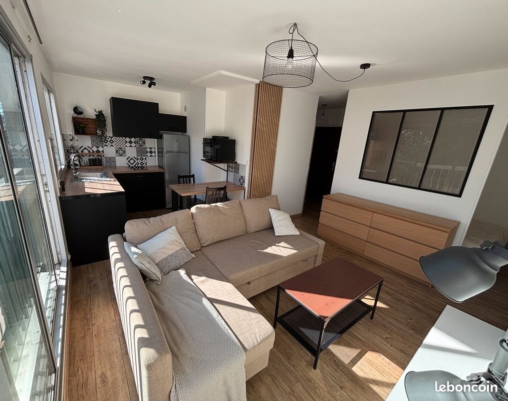 Appartement T1bis de 32m2 loué meublé. Appartement rénové en 2018, équipé de mobilier neuf en 2020 et fraîchement rénové début 2026. Localisation: Appartement situé à Ifs (limitrophe Caen), à proximité des transports en commun (bus et tram), des commerces et à moins de 20min à pieds (ou 7min en voiture) du Dut informatique, campus 3. Description: Appartement fonctionnel et agréable dans une résidence bien entretenue, sécurisée et calme. Exposition plein sud et donnant sur le parc de la copropriété. Idéal pour étudiant ou jeune couple grâce à son aménagement pratique et souhaitant un logement clé en main. Le logement est composé de : - Une entrée avec placard, lave linge. - Une salle de bain avec baignoire et meuble monovasque - Des toilettes séparés - Un espace nuit équipé d’un lit double (140x200) avec literie et placards suspendus. - Une cuisine ouverte et équipée des éléments suivants : grand frigo, four micro onde, plaque induction, lave vaisselle 4 couverts, ustensiles de cuisine (vaisselle, poêles...), table et chaises. - Pièce de vie (environ 18m2) avec : Canapé convertible, table basse, meuble Tv, commode et rideaux occultants Informations complémentaires : - Chauffage électrique - Fibre - Place de parking privatisée - Cave individuelle - Appartement non fumeur. Loyer : Appartement loué 610€/mois charges comprises comprenant 540€ de loyer + 70€ de charges (eau froide et entretien des parties communes) Appartement disponible dès maintenant. Si vous êtes intéressé pour une visite, merci de faire parvenir en amont votre dossier complet (voir liste disponibles sur le site du gouvernement) Je suis disponible pour tous renseignements complémentaires.