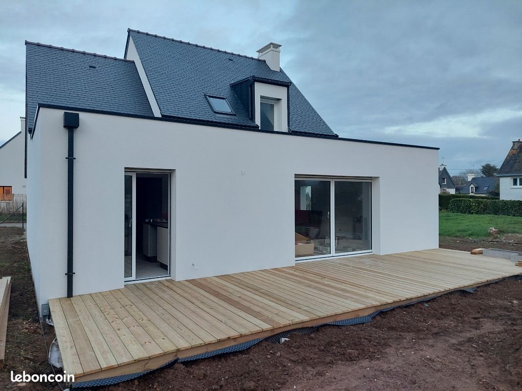 Maison en cours de finition Disponible mi janvier Maison neuve avec chambre et salle de douche parentale Wc séparé Cuisine amenagee équipée ouverte sur salle avec baie à galandage Etage: 3 chambres Salle de douche Wc separe Chauffage au sol aerothermie Volets centralises Terrasse bois Porte motorisée