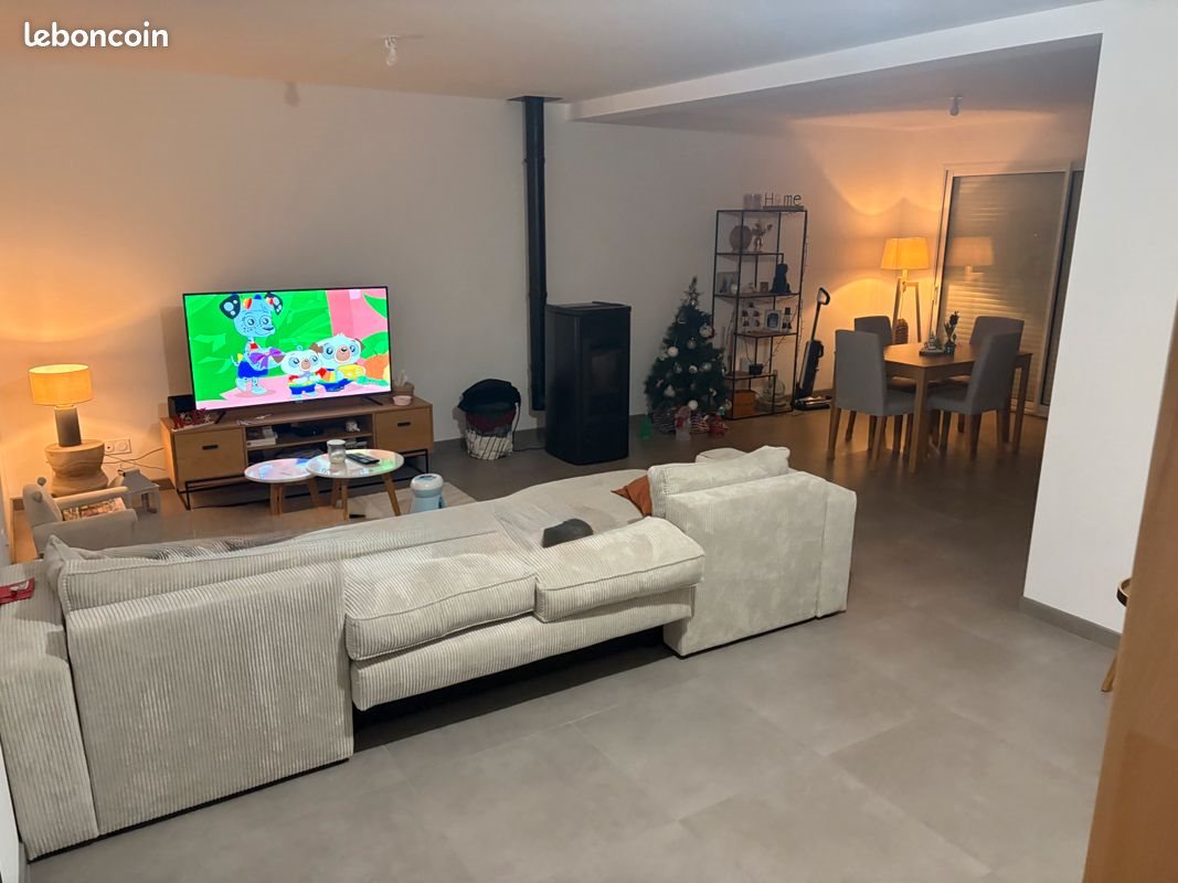 Maison à louer comprenant : Rdc : 1 pièce principale ( salle/salon) avec cuisine ouverte ( cuisine meublée), 1 buanderie, 1 Wc Etage : 3 chambres, 1 salle de bain avec douche, 1 Wc 1 garage Chauffage : poêle à granulés Exterieur : terrasse + pelouse Loyer : 890 € + provision charges ( taxe Om, ent. Poele, ent fosse)= +40 € Libre à compter du (revenus : minimum 3 fois supérieur au loyer + garants)