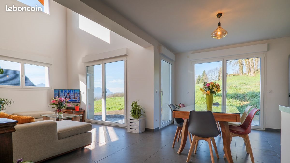 A Chapeiry, loue en bail mobilité 1 à 5 mois ( mutation professionnelle, mission temporaire, situation intermédiaire .. ) ou bien bail saisonnier - Charges comprises , une maison récente, lumineuse et spacieuse dans une petite résidence de 4 logements, un environnement campagnard au calme avec vue dégagée plein Sud 4 pièces et deux salles de bains avec un agencement optimal offre des grands volumes agréables à vivre avec un salon cathédrale. C'est une construction récente confortable très bien isolée avec un Dpe B-A . Vous trouverez au rez-de-chaussée une entrée avec placard, une très belle pièce de vie avec sa cuisine équipée ouverte sur un salon / séjour donnant sur la terrasse et un environnement champêtre, une grande chambre avec sdb privative avec baignoire, cellier / buanderie, un toilette, chauffage au sol. A l’étage, une grande chambre parentale et une salle de bain avec douche italienne, toilette indépendant et une grande mezzanine ouverte sur le salon cathédrale, idéale pour un grand bureau ou bien un espace détente, sport. Village campagnard agréable, Chapeiry dispose d’une école primaire et d’un commerce de proximité. Photos complémentaires après un premier contact. A 1 mn de l’autoroute A41, le logement se situe à 10 mn d ‘Annecy et 25 mn de Genève ou d’Aix les Bains .