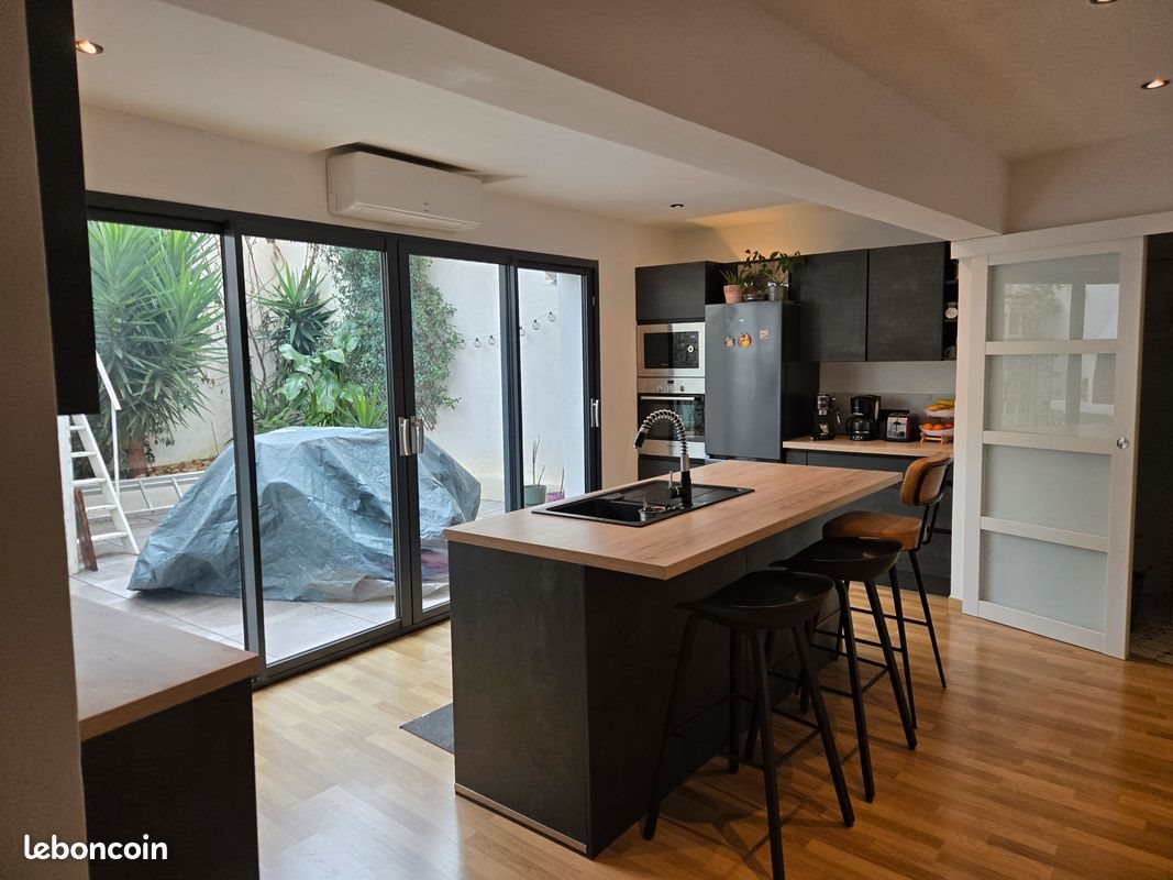 Maison de village renovee en 2022 . Au rdc cuisine equipee donnant sur une cour sans vis a vis , ouverte sur un sejour . Une salle d’eau avec toilettes et un garage pour une voiture ,Un scotter ,des velos . A l’etage 3 chambres , un bureau , une salle de bain . Clim reversible . Plus de photos sur demande .