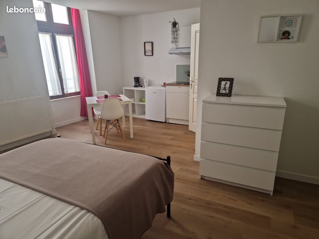 Dans résidence étudiante sécurisée et fibrée avec wifi , Je vous propose cette location toutes charges comprises à partir du 9 Mars jusqu'à fin juin de ce Grand studio de 27,41M2 - aucun contrat à prévoir tout étant inclus dans le montant du loyer travaux de rénovation des sols et de l'espace cuisine en cours de finition (photo 1 vous donne une vue du logement une fois les travaux réalisés) Réservation pour septembre possible (me par message) idéal stage ou formation étudiant - également adapté à mission professionnelle ponctuelle 4éme étage, exposé sud Ouest, lumineux et vue dégagée 500 Euros par mois dépôt de garantie à verser à la réservation 550 euros proximité immédiate ville et commodités, laverie Neuve à 250 M Rue maréchal Foch Parking gratuit rue et alentours éligible aux Apl garants demandés