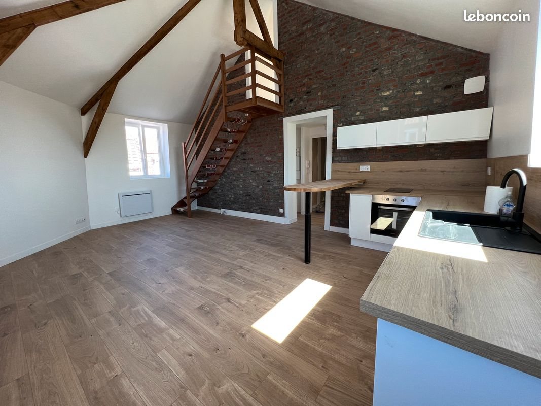 Sympathique appartement en duplex dans le centre de Comines ( rue Hurlupin) Situé au 2eme et dernier étage. Salon séjour ouvert sur cuisine Chambre et salle de bains avec Wc séparé 2 -ème chambre en mezzanine. Appartement rénové complètement en 2022 Surface habitable 50m² + mézzanine 16 Loyer 725 + charges 40 + eau Appartement disponible le 9 avril, meme avant -) Garant demandé.