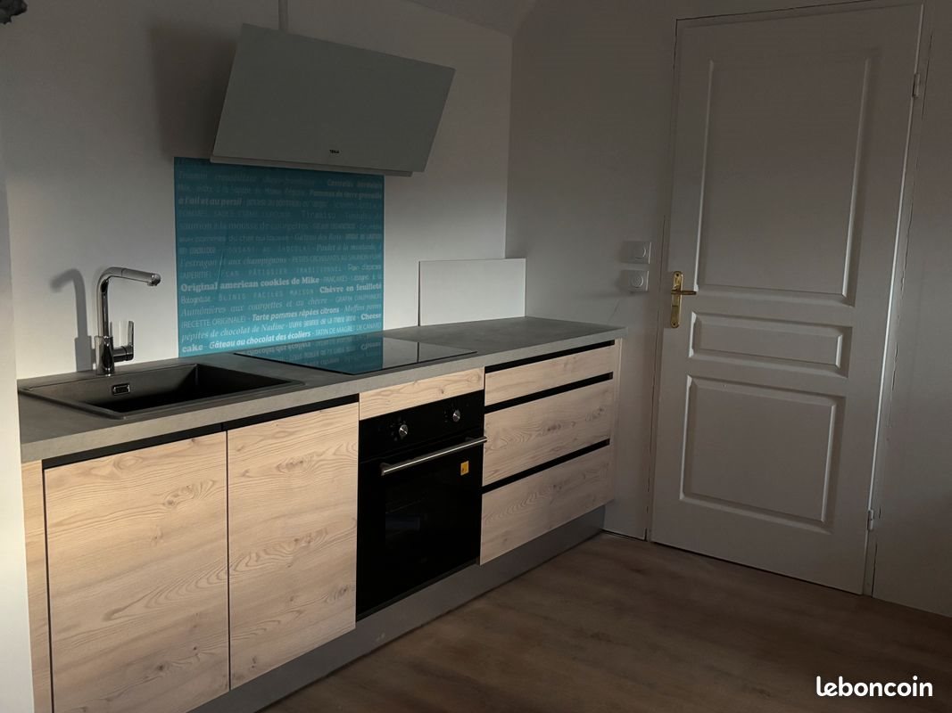 Appartement récent composé d’une pièce de vie avec sa cuisine, de deux chambres et d’une salle de bain. Cuisine équipée avec four, plaques de cuisson et hotte. Salle de bains avec grande douche et Wc. Loyer 500€ + 40€ charges comprenant l’eau et l’électricité des communs. Chauffage électrique (radiateurs à inertie) Dpe C Disponibilité : 10 avril 2026