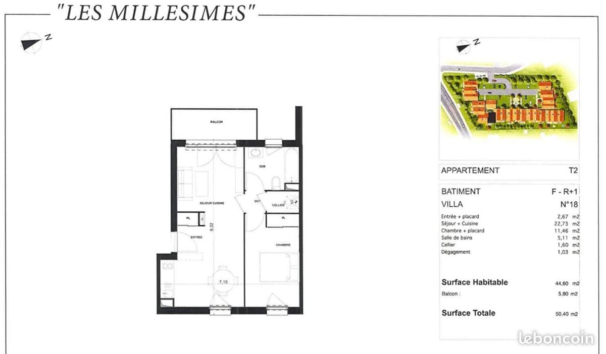Appartement 2 pièce(s) 44.60 m2 Au sein d'une résidence sécurisée, T2 de 44,60m² comprenant : une entrée avec placard, un séjour-cuisine, une chambre avec placard, une salle de bains avec Wc et un cellier. Un emplacement de parking accompagne ce bien. Chauffage et Eau chaude : Chaudière individuelle au gaz. Loyer mensuel 633,00 euros charges comprises dont 45,00 euros de provisions pour charges (avec régularisation annuelle). Honoraires Ttc à la charge du locataire 579,00 euros dont 133,00 euros d'honoraires d'EDL. Dépôt de garantie 588,00 euros. Contactez nous par téléphone au [Coordonnées masquées] ou par mail [Coordonnées masquées] Référence annonce : 1036 Date de réalisation du diagnostic : Honoraires à la charge du locataire : 579 € Ttc dont 133 € pour l’état des lieux Dépôt de garantie : 588 € Montant des charges : 45 € / mois Modalité de récupération des charges locatives : provision avec régularisation annuelle A propos de la copropriété : Pas de procédure en cours