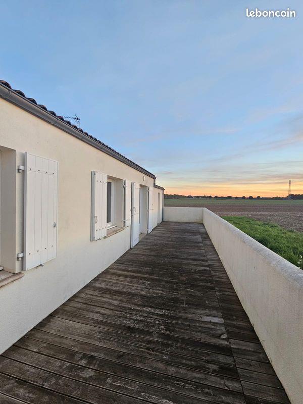 Maison située à Villedoux 17230 en bordure de village 70m² garage non inclus Maison composée de : 2 chambres , Salon coin repas , Kitchenette Salle d eau, Wc séparés Terrasse Maison située au calme Loyer : 870 euros par mois charges non incluses Fournir les revenus et deux cautions solidaires demandées
