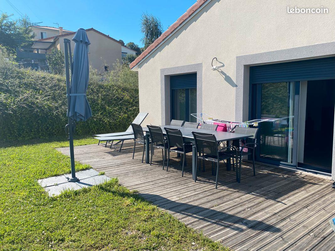 Maison au calme très lumineuse Elle se compose ainsi : au Rdc : un hall d'entrée, une chambre de 14m², 1 Wc, garage de 24m² au 1er étage : salon ouvert sur cuisine (40m²), 3 chambres (9, 10 et 11m²), une salle de bain, un Wc, accès terrasse chauffage gaz, construction récente qui se situe dans un lotissement très calme, exposition Sud 1er contact par email -