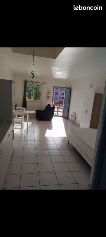 A louer grand studio lumineux de 32.5 m2, au 1er étage, bon état, tout électrique, comprenant : - grande pièce de vie (avec puit de lumière), - coin cuisine (placards, frigo, plaques vitro céramiques), - salle d'eau (wc, douche, meuble avec lavabo et miroir). Le studio est loué meublé : - canapé, table basse, meuble Tv, Tv, - table et chaises, vaisselle et ustensiles de cuisine, four, machine à laver, - lit 2 places (matelas et sommier), armoire. Il est situé à 5mn à pied du centre ville, des commerces et de la gare, et à 10mn des lycées. Parking gratuit, emplacement calme, sans vis à vis. Prix : 380 € dont 30e de charges (sauf électricité