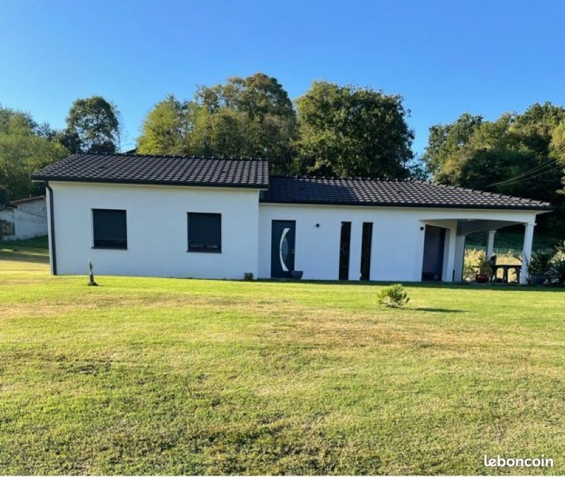 Maison récente de 120 m² habitable. Composé de trois chambres avec placards dont une avec dressing. Une salle de bain avec douche à l’italienne et double vasque. Cuisine ouverte avec îlot central , salon salle à manger. 1 Wc indépendant. Grande buanderie avec placard muraux , et petite cuisine. Terrasse couverte. Chauffage : poêle à granule Mcz + Clim réversible Cumulus thermodynamique. Garage extérieur de 30 m2 environ non attenant. 6000M2 de terrain environs Un bois de 2500 m2 environs , tout attenant. Maison économique Au calme. Vu dégagée sur les montagnes. Agence s’abstenir
