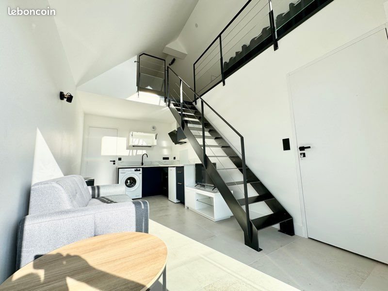 Magnifique T1 bis duplex loft à louer à l’année au 1er et dernier étage de 27 m2 neuf idéalement situé sur la route des plages, à Ploemeur. Construction neuve. Proximité immédiate centre-ville et plages. 1Km du bourg et 3km de la côte. Petite copropriété. Il est composé : - D’une cuisine ouverte aménagée/équipée (four micro-ondes, plaque induction, frigo, hotte, lave linge…). - D’un coin salon avec canapé, Tv et table basse - D’une chambre sous les toits avec lit 160 et rangements - D’une salle d’eau avec meuble vasque miroir, grande douche, sèche serviettes et Wc suspendu - Balcon privatif exposé ouest (couché de soleil) L'appartement est loué meublé (table à manger, chaises, literie, cuisine équipée avec électroménager), fenêtre double vitrage, chauffage électrique. Place de parking privative à l’appartement. Disponible immédiatement. Immeuble de standing (monopropriété), copropriété très tranquille de 6 appartements. Porte immeuble (sécurisée, interphone) + communs neufs. Quartier très recherché, paisible. Le loyer s’élève à 700€/mois. Charges à la charge du locataire (eau + électricité). Dépôt de garantie de 2 mois. Merci de me pour toutes informations complémentaires et/ou visites. Premier contact par mail. Réponse sous 2h. Dossier sérieux demandé avec cautionnaire. Étude des dossiers, liste éléments disponible sur demande.