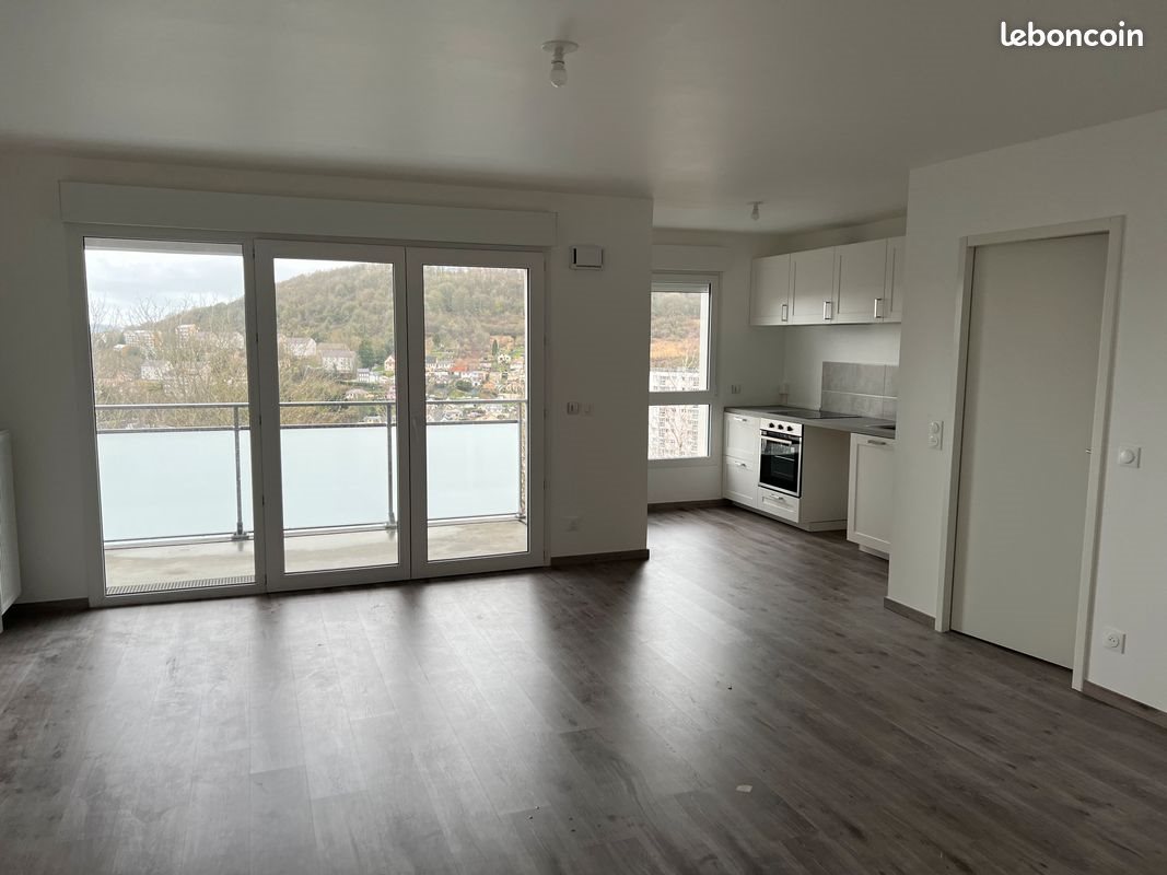 Appartement Lumineux 3 pièces 64.95 m² + 5.07m² de Balcon (exposé plein ouest) Appartement 3 Pièces Lumineux au calme à louer à Darnetal (76160) La superficie de l'appartement est de 64.95 m² + 5.07m² de balcon. L’Appartement se situe au 2e étage du bâtiment B d'un immeuble de quatre étages avec ascenseur. L'accès à l’immeuble est sécurisé par digicode + visiophone. L'appartement de type F3 se compose d'une entrée (2.95m²) avec un petit placard de rangement donnant sur un séjour équipé lui aussi d'un placard. Le séjour donne sur une cuisine ouverte aménagée équipée. L'ensemble fait 28.24m². La cuisine est équipée de meubles bas avec tiroirs casseroliers et de meubles hauts. La cuisine est équipée : - d'un grand évier bac simple avec mitigeur. - d’une plaque induction. - d’une hotte aspirante à recyclage. - d’un four pyrolyse. Tout l'électroménager date de janvier 2022. Un dégagement (de 3.29m²) avec porte permet d’isoler l’espace nuit composé : - une chambre de 11.67m². - une chambre de 10.92 m² équipée d’un placard de rangement. - une salle de douche de 4.06m² équipé d'un meuble vasque et d'une douche à l'italienne. Le Wc (2.01m²) est séparé et se trouve à l'entrée de l'appartement. L’Accès au balcon sans vis à vis de 5.07m² se fait directement du salon. Le balcon offre une vue dégagée sur le vallon rouennais. Il est exposé ouest et est ensoleillé de l'après midi jusqu'au coucher. Vous disposez de deux places de stationnement : Une place de stationnement en sous-sol de la résidence privative. L’Accès au sous-seul peut être fait par ascenseur et est fermé par une porte électrique. Une place de stationnement privative extérieure située aux pieds de la résidence. Vous aurez un accès aux transports en commun au bout de la résidence. Vous trouverez tous les types d'écoles commerces et le centre de Darnetal (départ Teor vers Rouen) à proximité. Il s’agit d’un logement de 2021 chauffé avec une chaudière gaz qui dispose de toutes les dernières normes d’isolation phonique et thermique. Cet appartement est loué en Pap, soit pas de frais d’agence, un mois de loyers hors charge demandé pour le dépôt de garantie + garants physiques si nécessaire en fonction du dossier. Loyer : 705€/mois Charges : 80€/mois : eau, entretien des parties communes, ascenseur, éclairage, interphone/vidéo surveillance, espaces verts et contrat d’entretien chaudière Dépôt de garantie : 705€ (un mois de loyer hors charge). L'appartement sera disponible à partir du 27 mai 2026