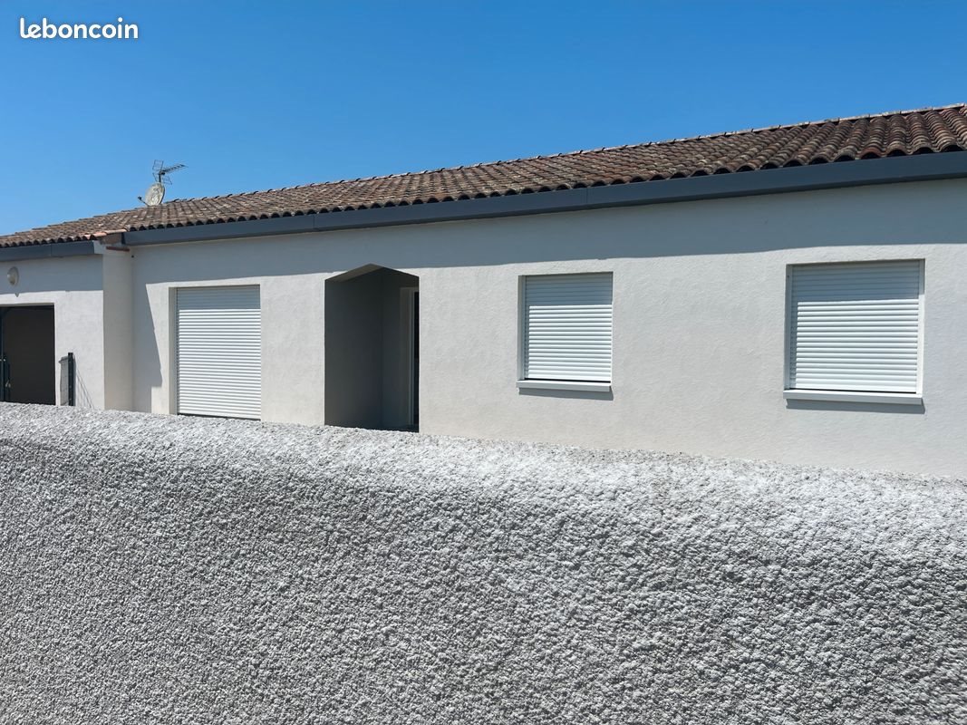 A Louer sur la commune de Donzac. Références sérieuses exigées. Maison plain-pied(115 m² habitables)Aux normes handicap. Séjour, salon, cuisine (45 m²) arrière-cuisine, buanderie. Salle de bain (douche+baignoire+2 vasques,WC dans le couloir.)3 Chambres+placards.Garage attenant.Chauffage, clim réversible-DPE. C Jardin, 1250 m² clos. Loyer: 900 € hors charges.