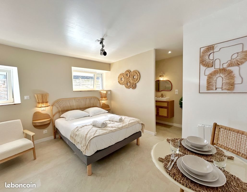 Vous serez séduit par la qualité de cet appartement neuf, convivial, lumineux et chaleureux, vous n’aurez plus qu’à poser vos valises ! L’appartement sera disponible à la location à partir de début avril. Le premier contact s’effectue sur la messagerie Leboncoin avec une présentation, description rapide de votre situation étudiante, la durée souhaitée, le garant ainsi que les revenus permettant de justifier le bon paiement du loyer. ?Pratique : Idéalement situé à seulement quelques mètres du sud de la gare de Saint-Brieuc, cet appartement de standing vous plaira par sa proximité des commerces (presse, restaurant, banque, pharmacie ..), des transports et du centre ville. Une alimentation Spar se trouve à 150 mètres, vous permettant d’effectuer vos courses avec facilité. Les arrêts de bus desservant les écoles et l’ensemble de l’agglomération se trouvent à proximité immédiate de la résidence. La résidence est fermée par un portail sécurisé. ? Confort : Ce jolie appartement de standing situé au rez de chaussée est lumineux et chaleureux, il dispose d’un espace nuit équipée d’un jolie dressing et un lit double confortable avec une literie de qualité hôtelière. Il est équipé d’un vidéo projecteur pour une immersion totale lors de vos soirées films. L’Espace repas est constitué d’un jolie table pouvant accueillir 2 personnes. La cuisine est composée d’un réfrigérateur, un four micro-onde grill, une machine à café, une plaque de cuisson, des ustensiles de cuisine ainsi que tout le nécessaire pour concocter des bons petits plats. La salle d’eau dispose d’une grande douche, équipée d’un sèche serviette et d’un Wc. ? Loyer : 450 € + 15 € de charges (entretien de la résidence). L’Eau et l’électricité seront à votre charge. • Caution : 2 mois de loyer hors charges + Garant Autres photos sur demande.