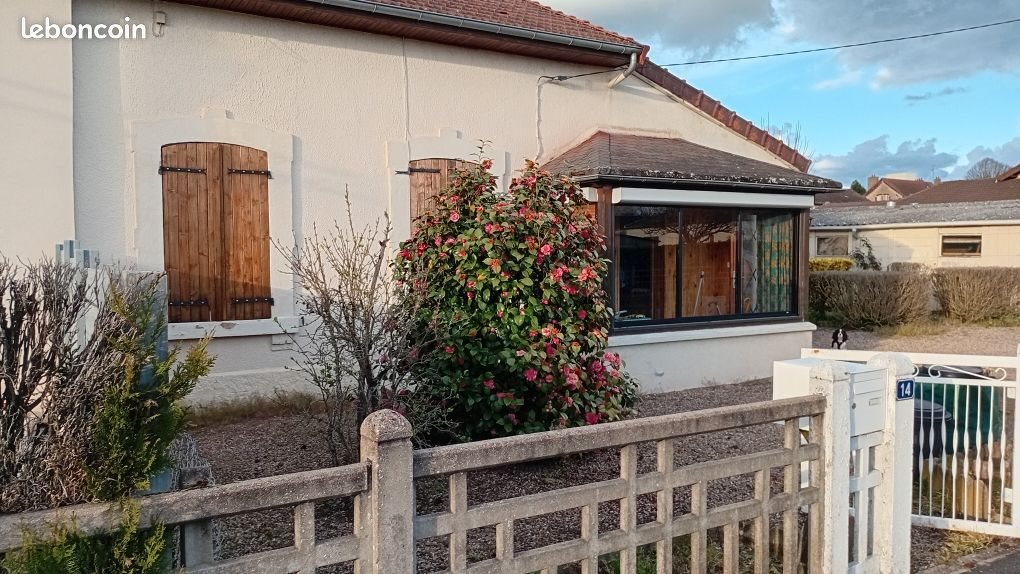 Maison, mitoyenne,14 rue Saint Pierre à Gueugnon, proche du centre ville, Terrain 530 m2. 118 m2 à habitable. Chauffage central au gaz Petite véranda d’entrée pour accéder à la cuisine. Rdc : Cuisine de 9,5 m2 1 petit couloir de 4 m2 dessert : Un Wc de 2 m2 indépendant Une salle de bain de 6 m2 équipée Une chambre 12 m2 Un salon de 22 m2, équipé d’une cheminée bois à avec un insert Une salle à manger de 20 m2 Etage : 1 chambre de 12 m2 1 coin repos ou bureau de 6 m2 1 dressing de 5 m2 1 chambre enfant de 9,8 m2 1salle de jeux de 5,2 m2 Dependances : 1 garage fermé avec une pièce attenante 1 atelier 1 cave de 8 m2 sous la chambre et un petit grenier (accès par l’extérieur) 1 Jardin. Vente directe entre particuliers : Contact et Rdv par téléphone