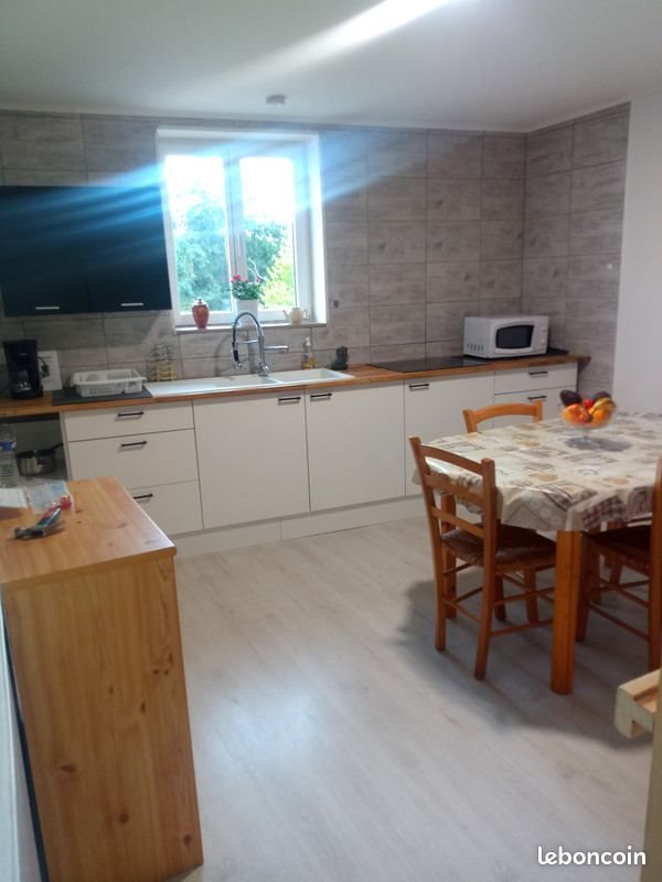 Au 1er étage, appartement spacieux (100m²), entièrement équipé, 3 chambres, dont 2 avec lits 160, un espace détente avec téléviseur, Wifi, salles de bain et toilettes, lave-linge, cuisine équipée avec ustensiles, Chauffage / rafraichissant par Pac air/air. Conditions de location: - Tarif loyer charges comprises : 850€ / mois, durée min. 3 mois - Caution : 500€ - Préavis: 3mois