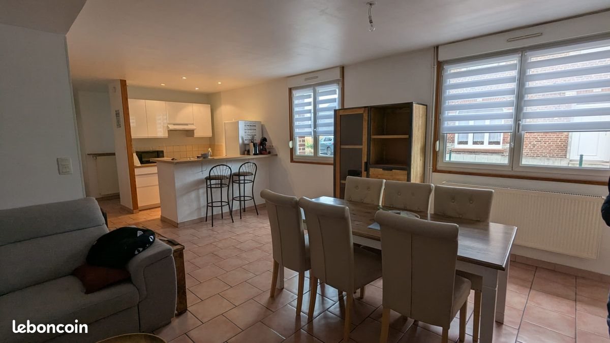 Maison de plein pied en plein centre village, à proximité immédiate des commerces (boulangerie, pharmacie, boucherie etc), de l'école, du stade et des aires de jeux. Un parking communal gratuit avec bornes de recharges électrique est disponible en face de la rue. La porte d'entrée s'ouvre sur un couloir desservant 2 chambres et débouchant sur une large pièce à vivre qui intègre une cuisine équipée de type américaine. Les Wc sont indépendants de la salle de bain. Double vitrage, combles isolés, tout à l'égout. 650€/Mois charges non comprises