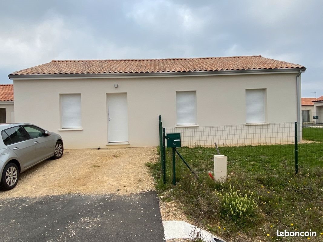Loue maison individuelle de 70 m² avec jardin de 420 m² Terrasse en bois Une pièce principale avec cuisine aménagée 3 chambres Salle de bain avec douche italienne Cellier Cabane de jardin Chauffage au sol avec pompe à chaleur