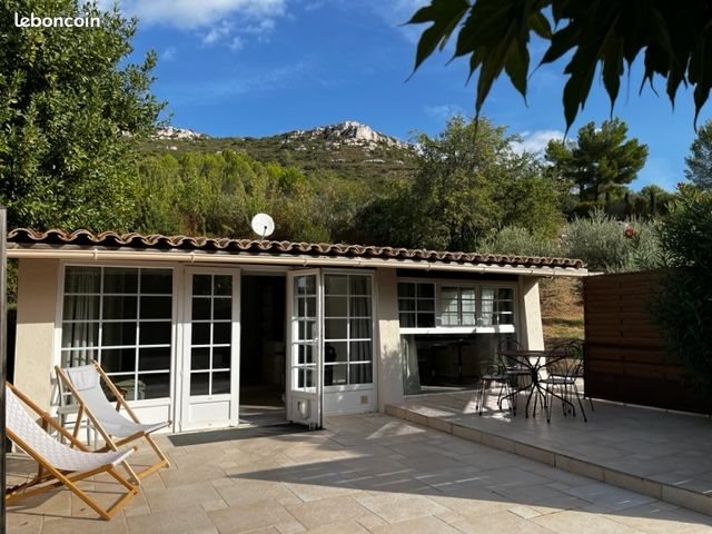 Maisonnette-Grand Studio, Tres Calme, Provence Ideal pour une personne seule ou jeune couple Grand studio maisonnette, une seule pièce, cuisine équipée, un coin chambre avec 1 lit de 160 et un coin séjour avec un canapé lit (séparé par un rideau), meublé. Salle de bains douche et toilettes, climatisation, wifi, Terrasse, buanderie avec machine à laver le linge. Très calme, dans le hameau du Pigeonnier, face à la Sainte Baume, sur un terrain arboré, oliviers, amandiers... Libre du 1er/3/26 au 1er/ € / mois toutes charges (électricité, eau, wifi… compris) 1 mois de caution