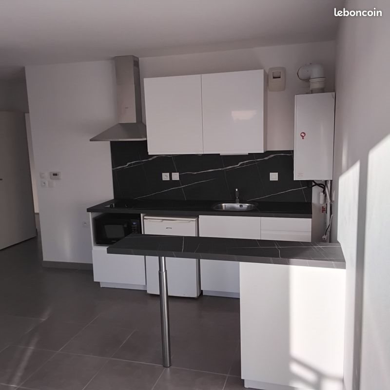 Particuler loue appartement à l’année, 2 pièces 50 m2 ( loi carrez) au 2ème étage dans une résidence de 2014, proche toutes commodités. L’Appartement comprend: Un séjour avec cuisine ouverte neuve aménagée et équipée Une chambre avec parquet Une salle d’eau avec lave linge et Wc Un coin bureau Nombreux placards Un parking sécurisé en sous sol et une cave complètent ce bien. Loyer 800 € + 60 € de charges ( comprenant charges copropriété et taxes ordures ménagères) Dépôt de garantie : 800 €