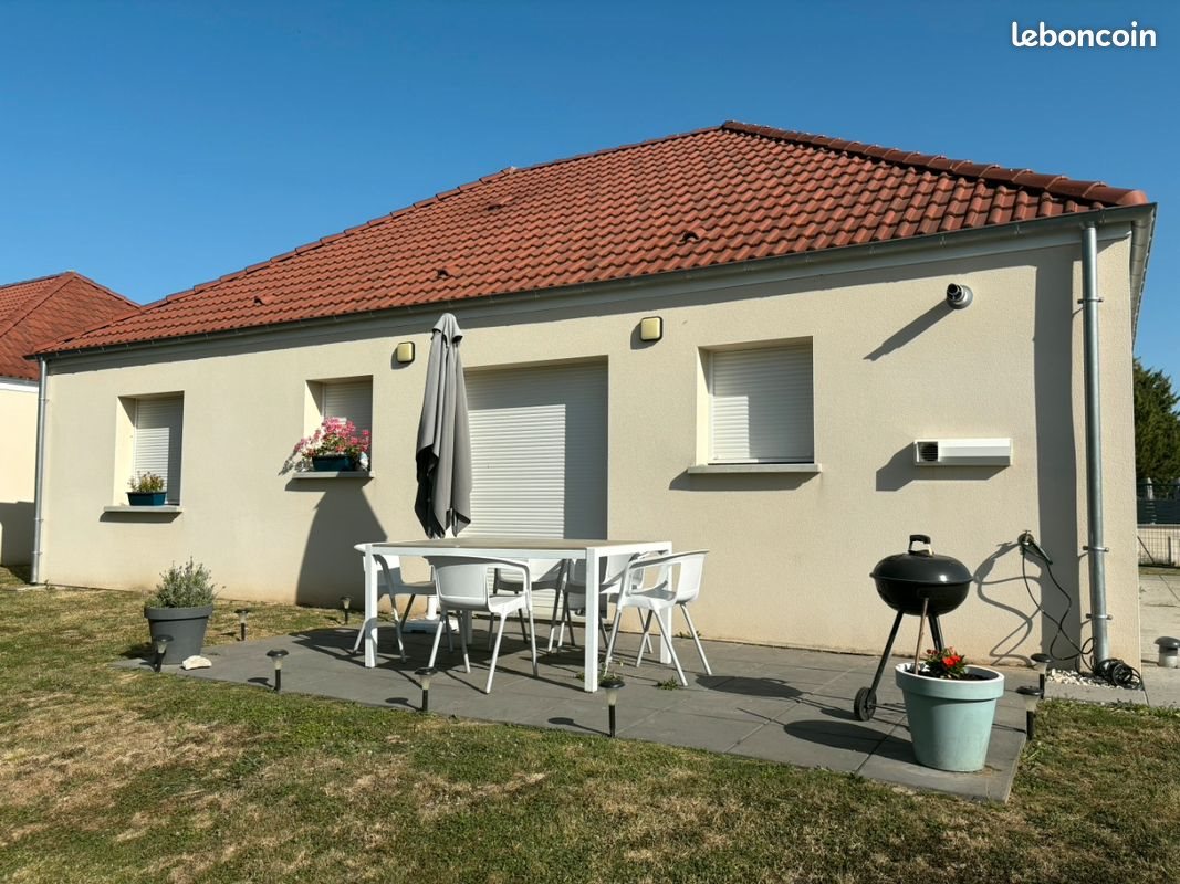 Bonjour, Je loue cette maison construite en 2020 et meublée de 70m² à Lépine. Cette maison de plain-pied comprend un espace de vie généreux avec une belle luminosité, baie vitrée exposée sud. - garage pour un véhicule et deux places de parking devant. - 2 chambres de 10,5 m2. - Jardin de 400m2 environ. - une salle de bain avec douche. - Wc séparés. - une terrasse exposée sud. La maison est située dans un quartier calme et résidentiel. Chauffage au gaz et ballon d’eau chaude thermodynamique. Dpe B et B. N'hésitez pas à me pour plus d'informations, pour organiser une visite et pour plus de photos.