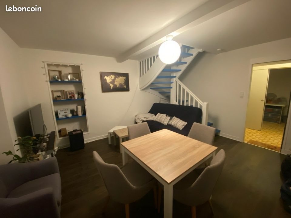 A Chalonnes petite maison mitoyenne à louer pour 2 personnes, avec 2 contrats de travail au rdc pièce de vie, et cuisine séparée équipée: table cuisson gaz, four électrique, frigo/compartiment congélateur Wc séparé à l'étage: 2 chambres, petite salle de bain baignoire, lave-linge extérieur: cour et remise. 2 places parking chauffage électrique consommation moyenne 7000KWh/an, soit en moyenne 135€/mois compteur électrique individuel. Contrat à souscrire directement auprès du fournisseur. Compteur d'eau individuel. Contrat à souscrire directement auprès du fournisseur. Loyer 685€ . Electricité et eau ne sont pas compris. Libre le 1er juin visites à partir de 18h30