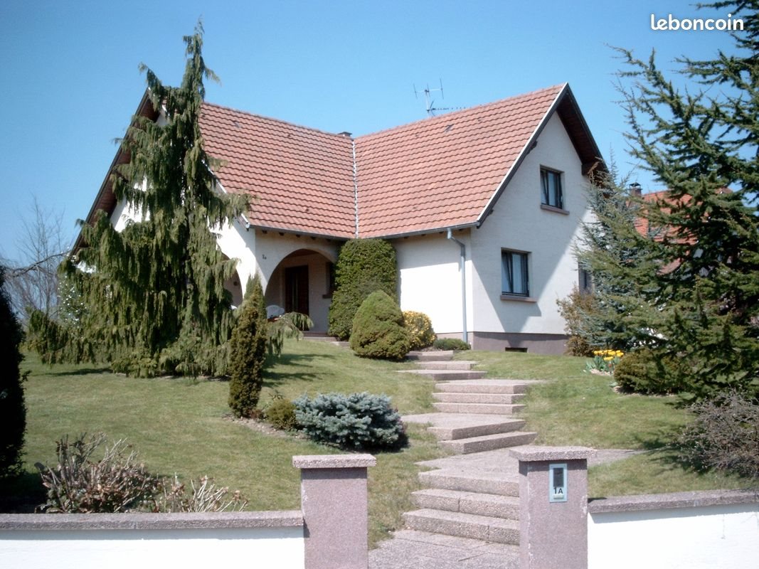 A Altorf (67120), Maison 7 pièces de 190m2 au sol, prestations tout confort et de qualité, à 5 min de la gare de Molsheim, 15 mn de la gare de Strasbourg, dans un village calme, sur 12 ares de terrain paysagé, vue imprenable sur champs de la terrasse Sud sous perron de 15 m² et de la terrasse Ouest de 37 m² avec store électrique. Grande cour pavée avec parkings. Rdc : entrée, cuisine équipée, salon/séjour de 34 m², bureau, chambre, sdb avec baignoire + double vasque + douche, Wc séparé avec lave- mains Etage : 3 chambres, mezzanine, douche et Wc . Nombreux placards. Grand sous-sol carrelé avec buanderie, 2 grandes pièces de rangement avec placards. Garage pour 2 voitures et placards Chauffage au sol. Ecole et toutes commodités à proximité. Loyer 1455€ +20€ charges Eau et électricité à la charge du locataire Disponible pour Fin Mai 2026 Pas De Frais D’Agence Merci de me par Telephone pour un 1er contact