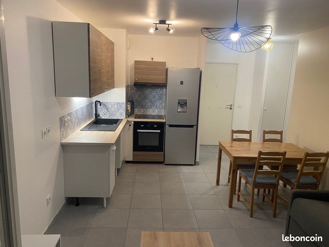 Vaulx-En-Velin Village. Appartement disponible immédiatement. Dans une résidence récente de 2017 sécurisée (interphone + code), loue T2 meublé de 40 m², entièrement rénové, situé au 3ᵉ et dernier étage avec ascenseur, exposition ouest, très lumineux avec vue dégagée sans vis-à-vis. Séjour lumineux avec balcon: Canapé convertible, table basse, meuble Tv. Cuisine ouverte entièrement équipée : frigo, congélateur, four, plaques de cuisson, vaisselle, emplacement lave-vaisselle. Espace repas avec table et chaises. Chambre avec lit 160x200, 2 chevets, double garde-robe. Salle de bains avec douche et meuble de rangement sous lavabo, branchement machine à laver + sèche-linge. Chauffage individuel gaz. Place de parking extérieure privée. Proche commerces et transports : Bus 52 à 50 m Bus C8 à 100 m Bus 7 / 37 / 57 / N83 à 300 m Loyer mensuel: 800 € + 35 € de charges (entretien chaudière, parties communes, espaces verts) Caution : 1600 € Pas de frais d’agence Disponible immédiatement Bail meublé 1 an renouvelable Conditions: Revenus minimum 3x le loyer (2400 €) Cdi ou situation stable Étudiant accepté avec garant Envoyer un dossier complet avant visite: - 3 dernières fiches de paie - dernier avis d’imposition - contrat de travail - 3 dernières quittances de loyer ou taxe foncière - pièce d’identité - étudiant : carte étudiante / certificat de scolarité Les visites seront organisées rapidement pour les dossiers complets. Merci d’indiquer votre situation professionnelle et vos revenus dans votre message. Mots clés: T2 meublé, appartement meublé, location T2 Lyon, location Vaulx-en-Velin, T2 avec parking, T2 balcon, appartement meublé Lyon Est.