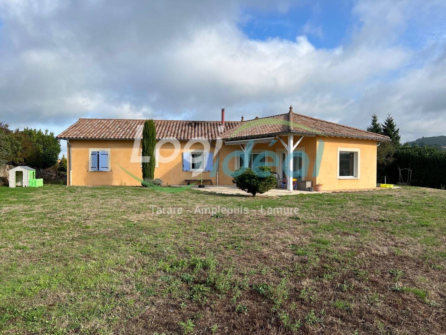 A proximité d'AMPLEPUIS - Saint Jean La Bussiere - En campagne, villa de plain-pied comprenant cuisine équipée, séjour avec poële bois, 3 chambres avec placard, bureau avec placard, sdb avec douche et baignoire, cellier, buanderie. Garage et abris voiture. Le tout sur environ 1540 m² avec vue dégagée.