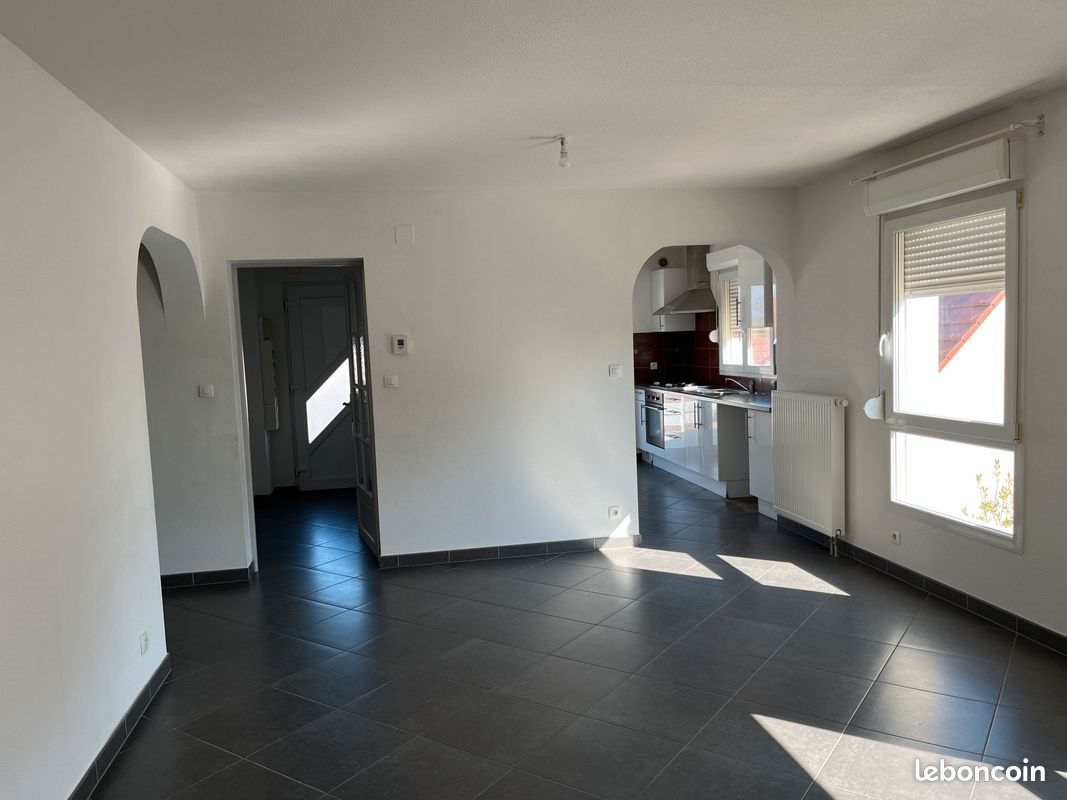 Appartement de 116m2 en duplex, cuisine équipée donnant sur le salon, 1 lingerie, 1 cellier, 1entrée avec placard, 3 chambres , salle de bain avec douche + baignoire, 1 grenier, à l'extérieur: 1 terrasse , 1 garage avec grenier et 2 places de parking privé
