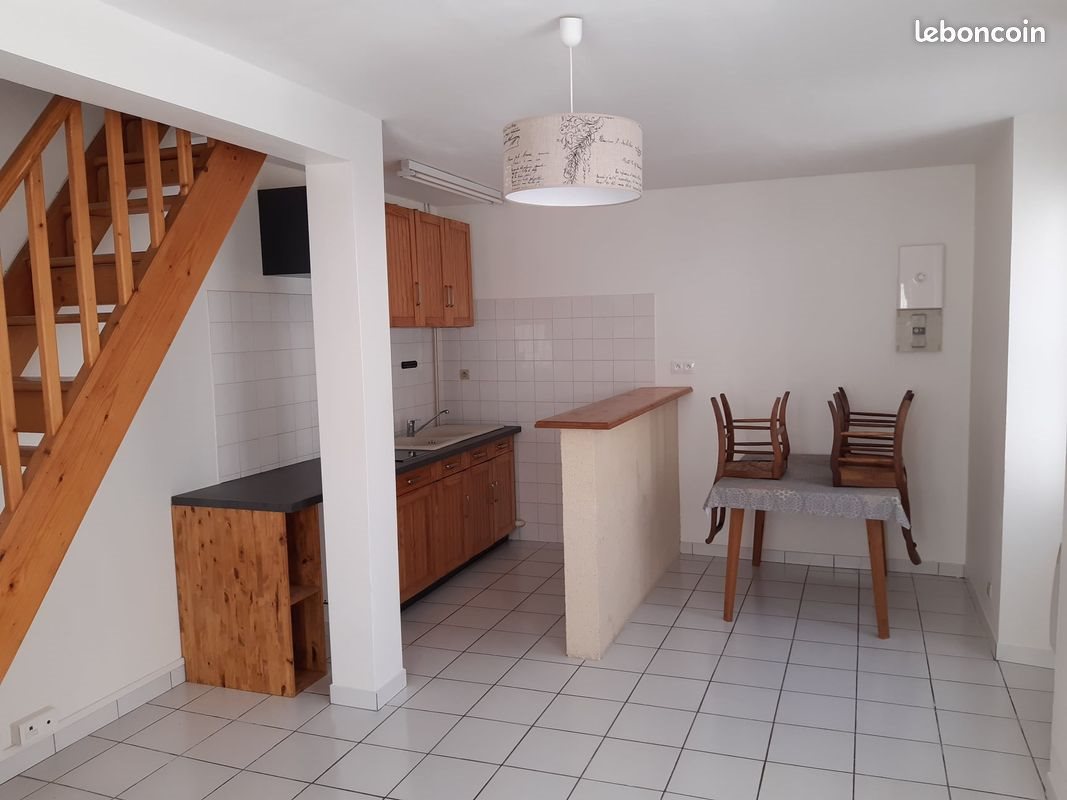 Petite maison mitoyenne de 35m2 idéalement située dans le centre ville de La Rochefoucauld. Elle se trouve dans la cours d'une copropriété et est composée de: - Au rez-de-chaussée, un salon cuisine - A l'étage une grande chambre, un dressing et une salle de bain Proche tous commerces, à 5mn à pied. Loyer 400 euros charges comprises (hors eau électricité) Premier contact par mail, en précisant nom, prénom, âge, profession