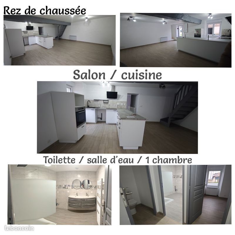 Location maison à étage avec exterieur Rdc cuisine/salon environ 35 m2 + 1 grande chambre + 1 salle d'eau double vasque et douche plate + 1 wc indépendant la cuisine est équipée d'un four + plaque induction et hotte Etage : 2 chambres et 1 wc Chauffage électrique par radiateur à inertie sèche Debarras avec un évier Garage Cour Fermee Refaite entièrement en 2023 A votre charge eau / électricité Premier Contact Par Le Bon Coin