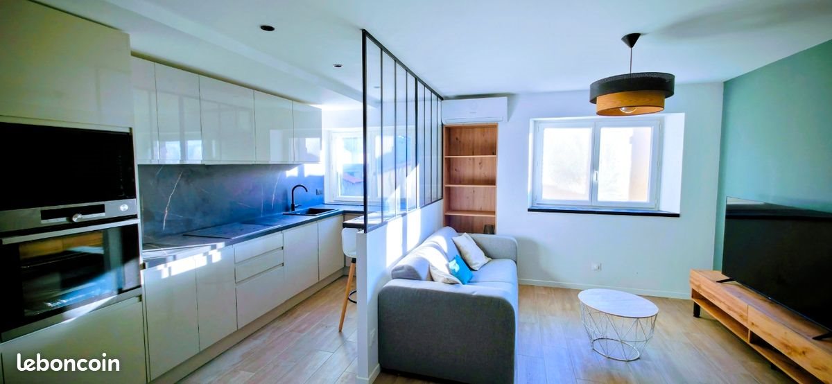 Loue appartement T2 meublé entièrement refait à neuf d'environ 40m2. Situé en plein coeur du village de Fuveau, à deux pas de la mairie, proche de toutes commodités et axes routiers (bus, autoroute, commerces...). Cet appartement est situé au 2eme et dernier étage, au calme. Lumineux et traversant, il est composé d’un sejour/cuisine, une chambre et une salle de bain. Description Sejour/cuisine: Canapé convertible, 1 table, 4 chaises et 2 chaises hautes, climatisation réversible, une télé, cuisineneuve et toute équipée (four, micro-ondes, plaque, frigo/congélateur et lave vaisselle). Chambre : lit en 140×200, placard équipé, meuble de rangement, radiateur et brasseur d'air. La salle de bain est composée d'une simple vasque, wc suspendu, grand bac à douche, chauffe eau individuel, machine à laver, sèche serviettes et rangements. Dpe B, comsommation logement très faible. Possibilité de se garer à proximité. 2 mois de loyer de caution obligatoire. Pas de frais d'agence. Loi visale obligatoire Prix loyer 890e (charge comprise eau). Disponible immédiatement.