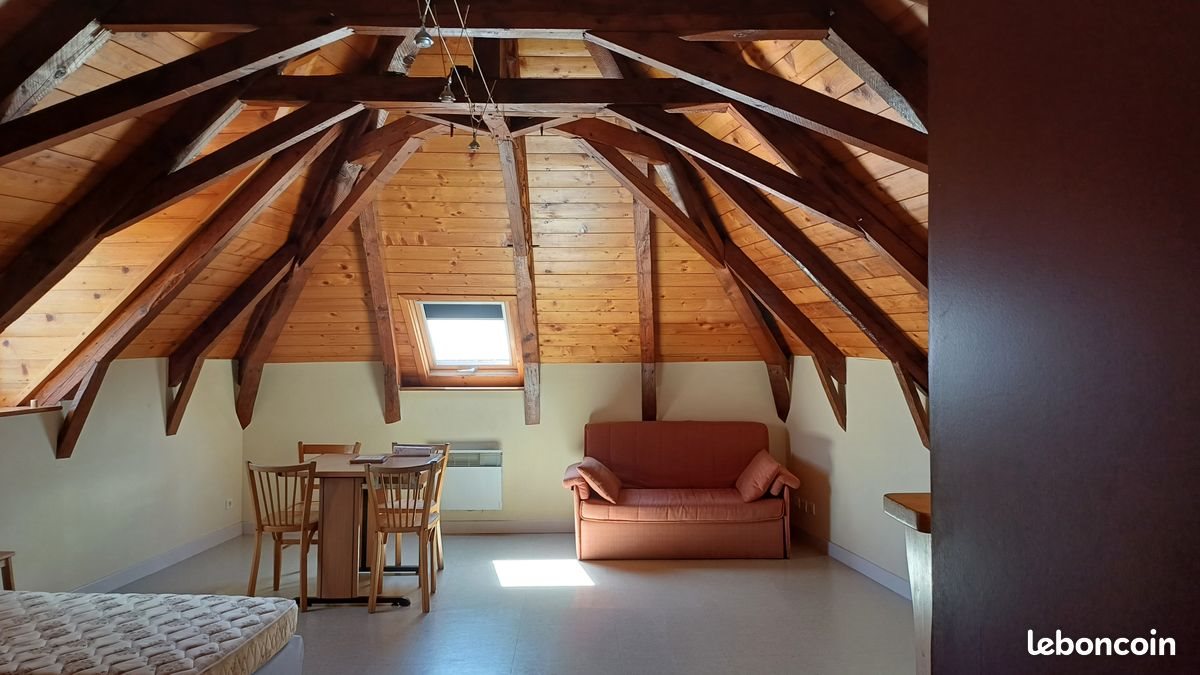 Studio tres lumineux avec poutres apparentes. Micro-Ondes.Plaques électriques. Frigo.Hotte aspirante table.chaises lit une place. Canapé lit . Box et local vélo. Facilité de parking. Centre ville.proximité des commerces. 500 métres des écoles . Dpe : E norme électrique Promotelec. Isolation des fenetres phonique et thermique