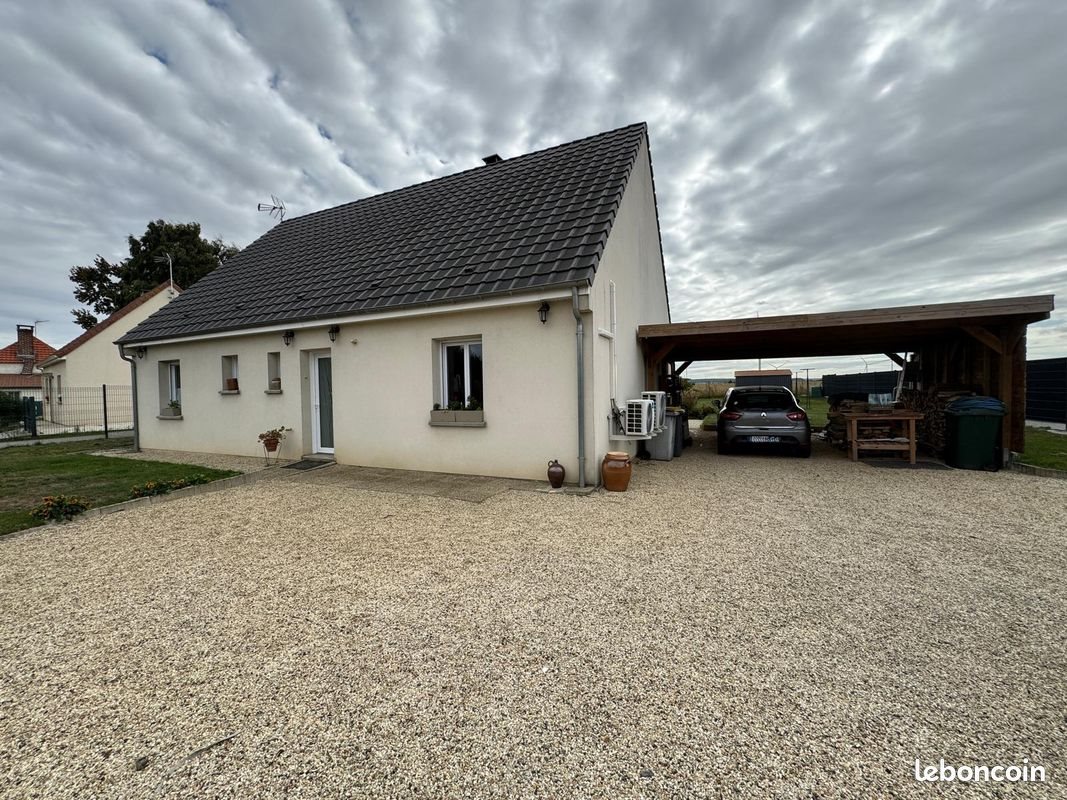 Maison 100m2 Plain-Pied - 3 Chambres - Double Sejour Particulier vend maison de plain-pied, comble aménageable à Ollezy proche Ham. Pièce de vie de 52m2, cuisine ouverte aménagée et équipée. Poêle à bois. 3 chambres, dont 2 avec dressing. Salle de bain moderne, double vasque, baignoire et douche italienne. Toilette indépendant. Chauffage clim réversible, poêle à bois. Jardin d'environ 1000m2, carport, abri de jardin. Terrain clôturé sans vis à vis, portail motorisé. Ecoles maternelle et primaire à 2 kms, ramassage scolaire.
